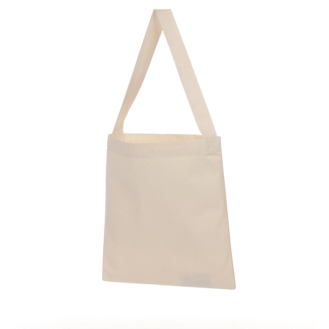 Hierbei handelt es sich um eine minimalistische, schicke Schulter-Tuchtasche mit den Abmessungen einer Standard-Baumwolltasche (des Modells TS). Der 4 cm breite und 80 cm lange Henkel wird an gegenüberliegenden Seiten der Tasche angenäht.